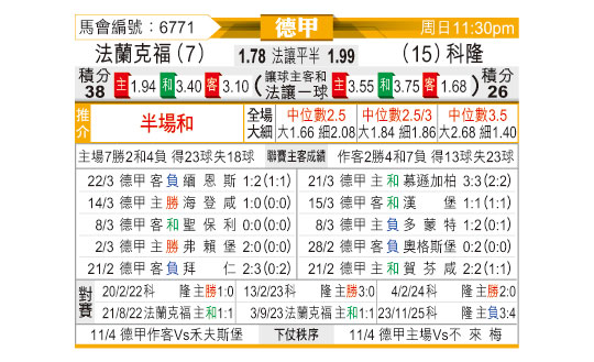 [德甲] 法兰克福vs科隆